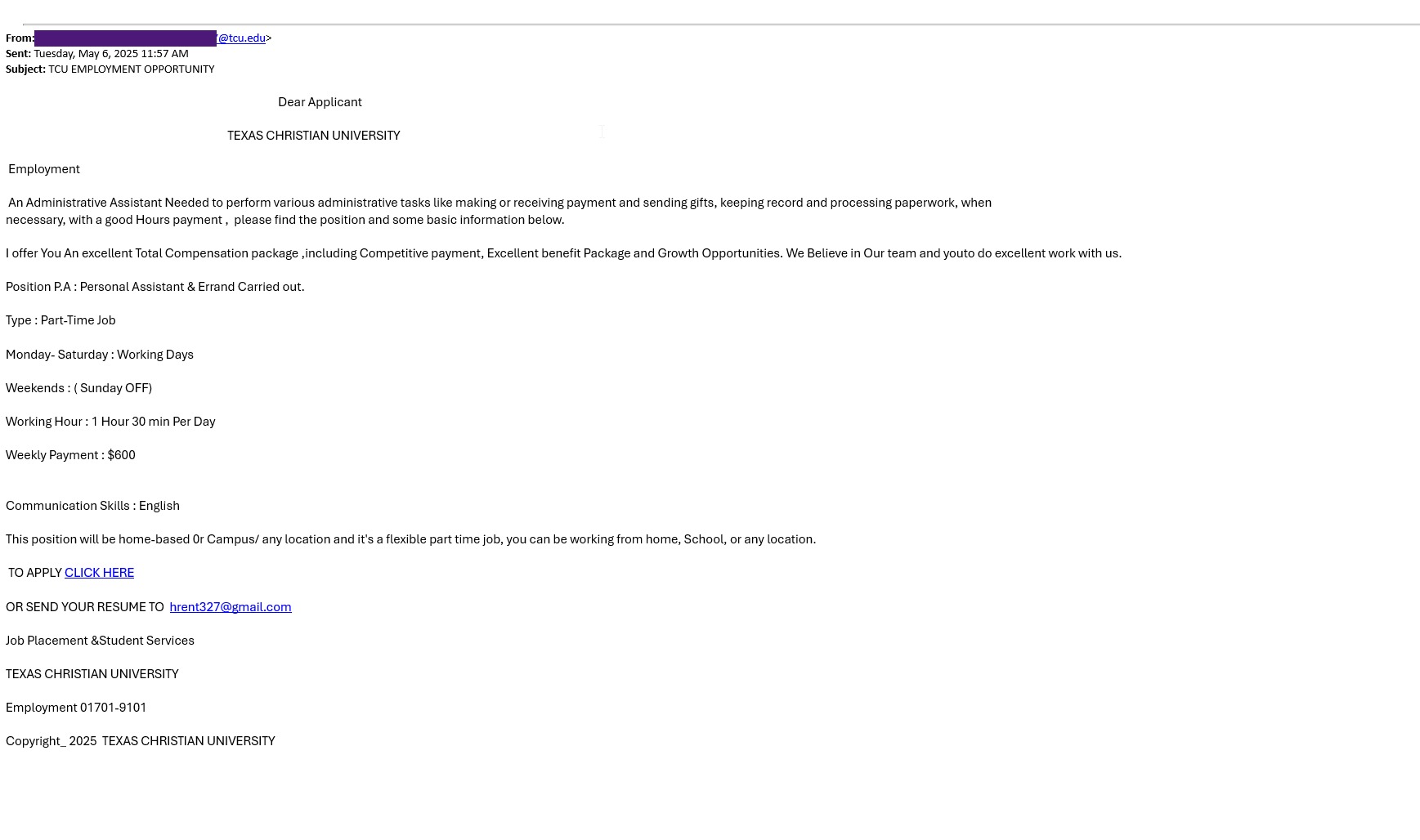 Phishing scams are becoming increasingly sophisticated, and some have targeted TCU